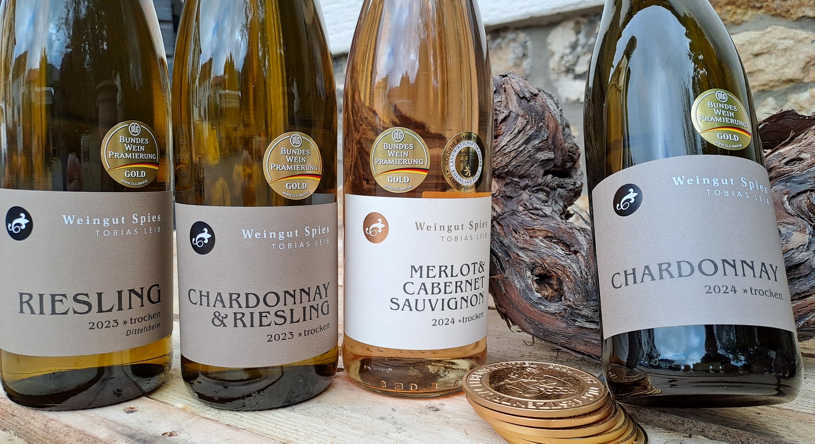 TOP 100 Weinerzeuger Deutschlands! Die Goldmedaille der diesjährigen Bundesweinprämierung ging an: 2023 Silvaner trocken (ausverkauft), 2023 Dittelsheimer Riesling trocken (24), 2023 Chardonnay & Riesling trocken (16), 2021 Riesling Spätlese trocken edition (26a), 2020 Frühburgunder edition trocken (101), 2020 Frühburgunder trocken – im Holzfass gereift (7)